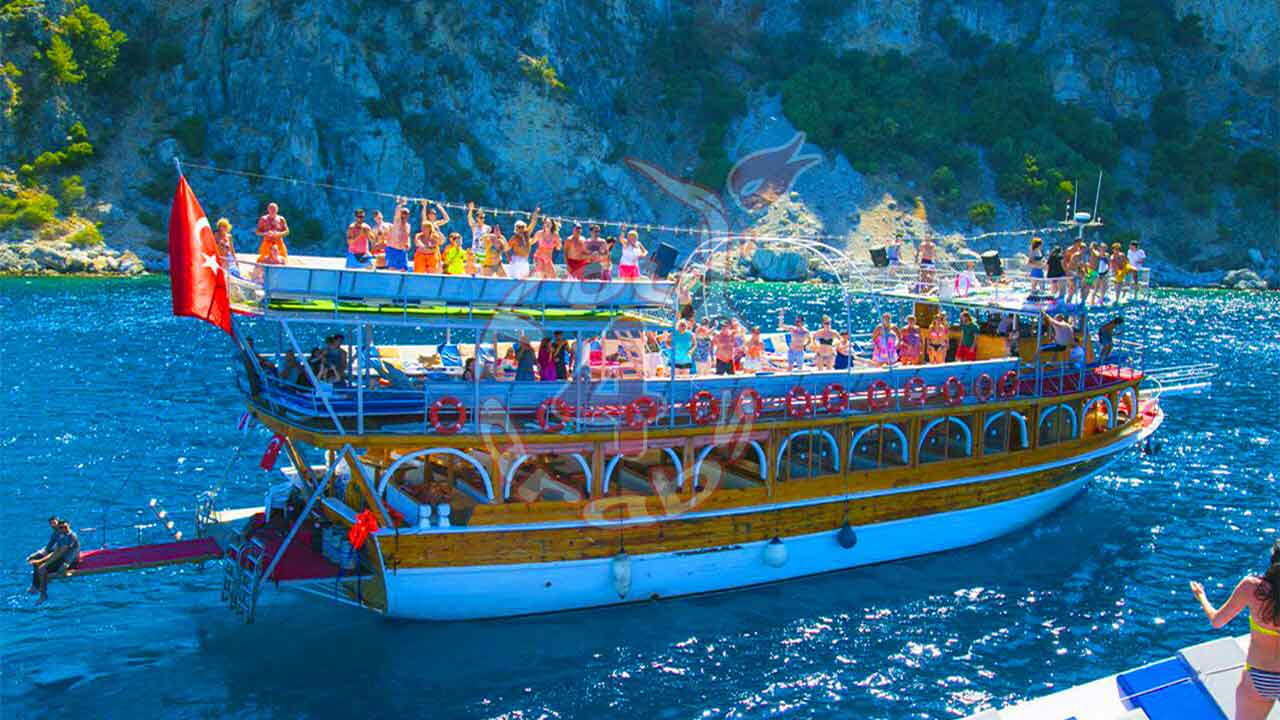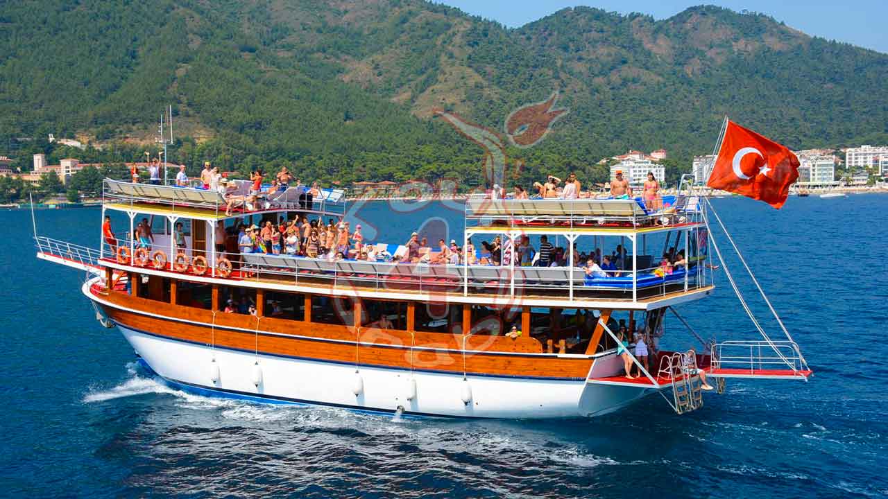 جزيرة الفردوس ، مزرعة الأسماك ، الكهف ، خليج حوض السمك ، خليج Kumlubuk ، وقرية Turunc والبحر الأخضر.