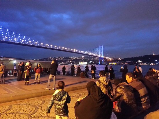 أورتاكوي: من إحدى أفضل الأماكن في إسطنبول, يمكنكم مشاهدة منظر رائع لمضيق البوسفورمع شرب الشاي و مشاهدة إسطنبول في المساء.